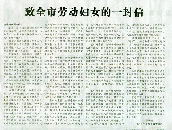 轉(zhuǎn)載:錦州市市委書記王明玉《致全市勞動婦女的一封信》。愿錦州市口腔醫(yī)院的姐妹節(jié)日快樂!共享醫(yī)院在第105個國際三八勞動婦女節(jié)來臨之際所獲得的“省三八紅旗集體”的殊榮。愿我們的生活更美好!